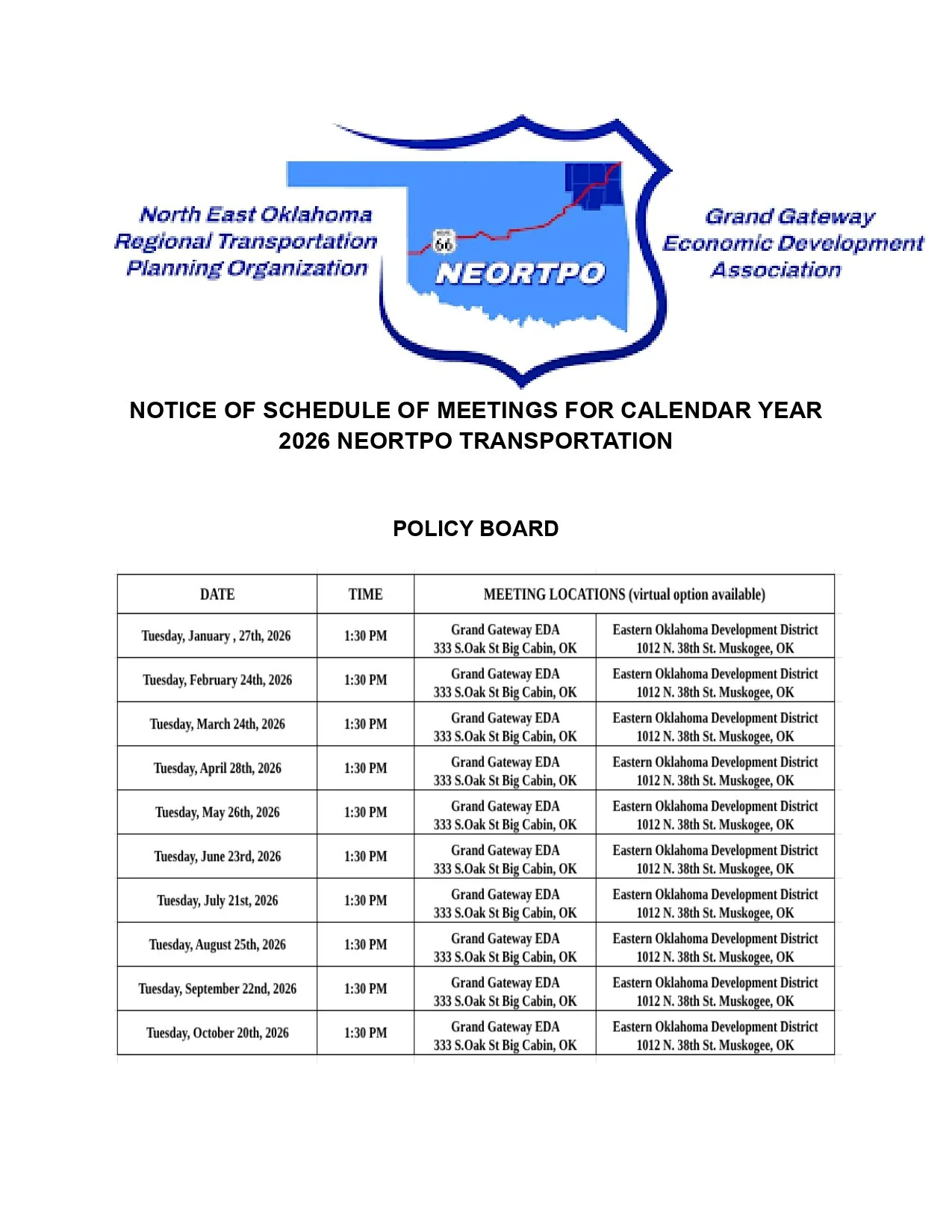 North East Oklahoma Regional Transportation Planning Organization